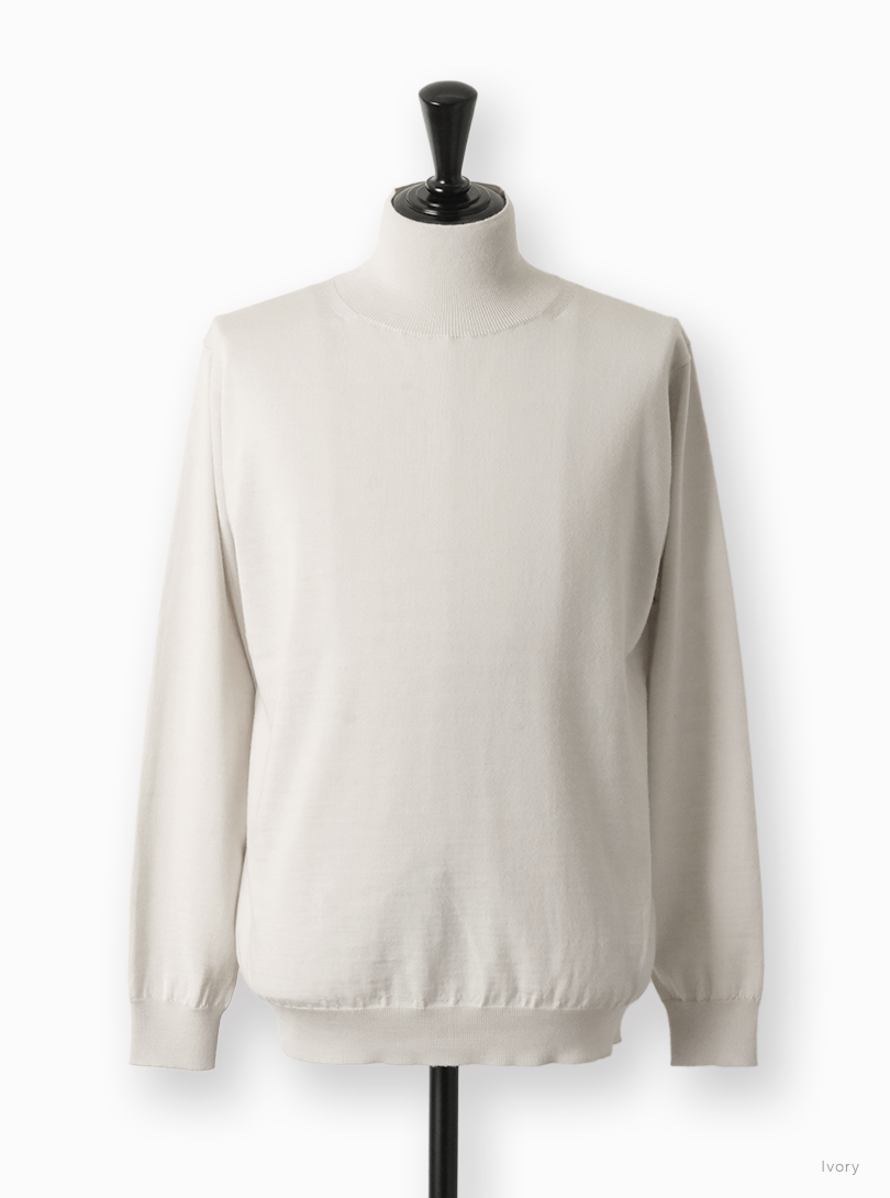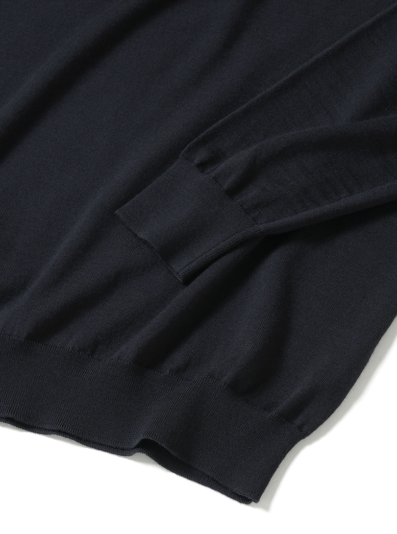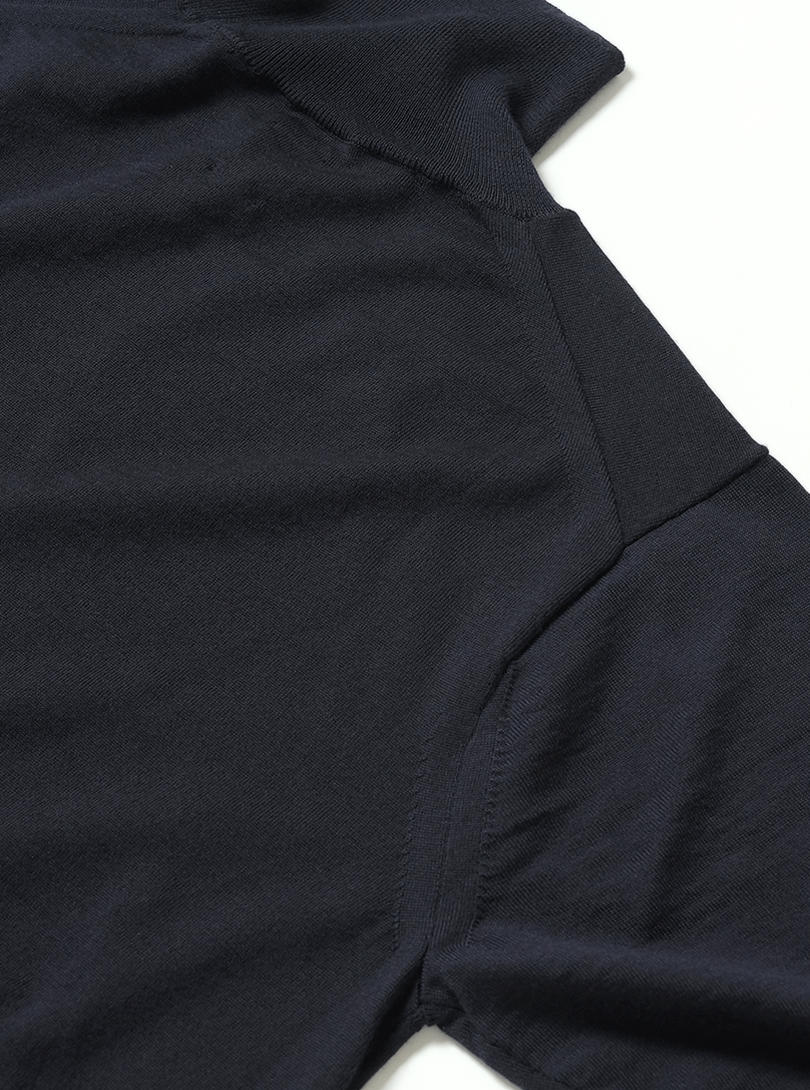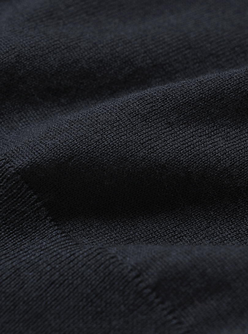 肌着にも採用されるほど柔らかなスーパーエクストラファインメリノウールをハイゲージの編み機でしっかり度目を詰めて編み立てました。