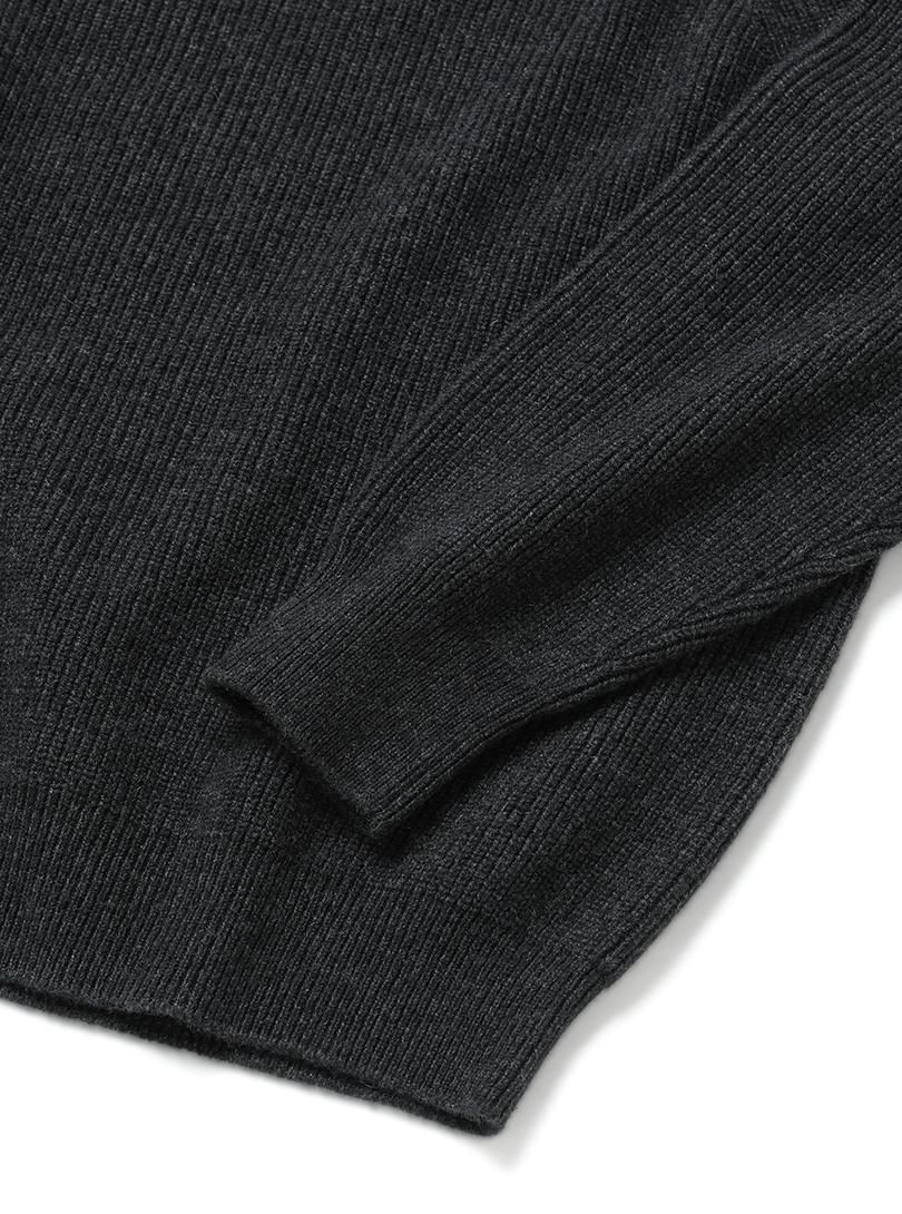 寒暖差のある地域から採取したカシミヤで製作した商品。均一な部分のみを採用した紡毛でありながら毛羽立ちすぎないすっきりとした風合いが特徴。程よい厚みで度詰めし編み立てました。BATONERのアイコニックな編み方を落とし込んだデザイン。
