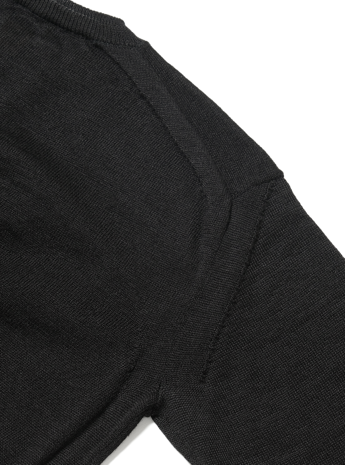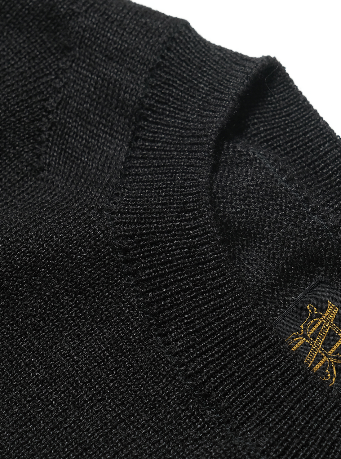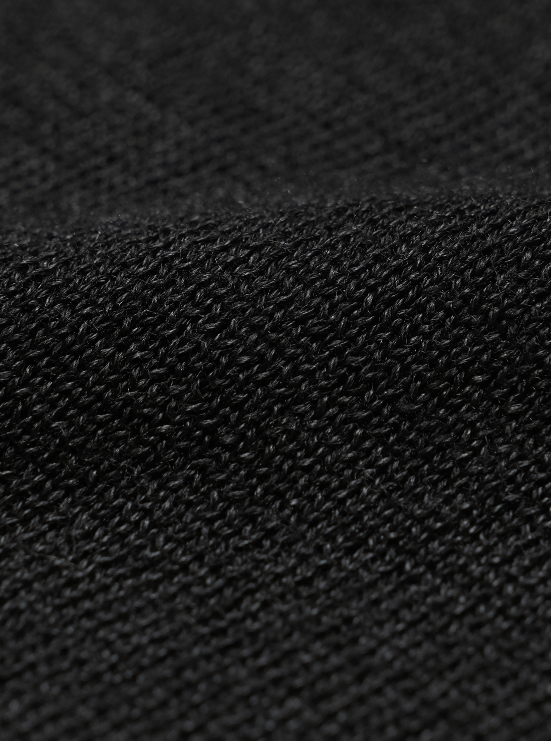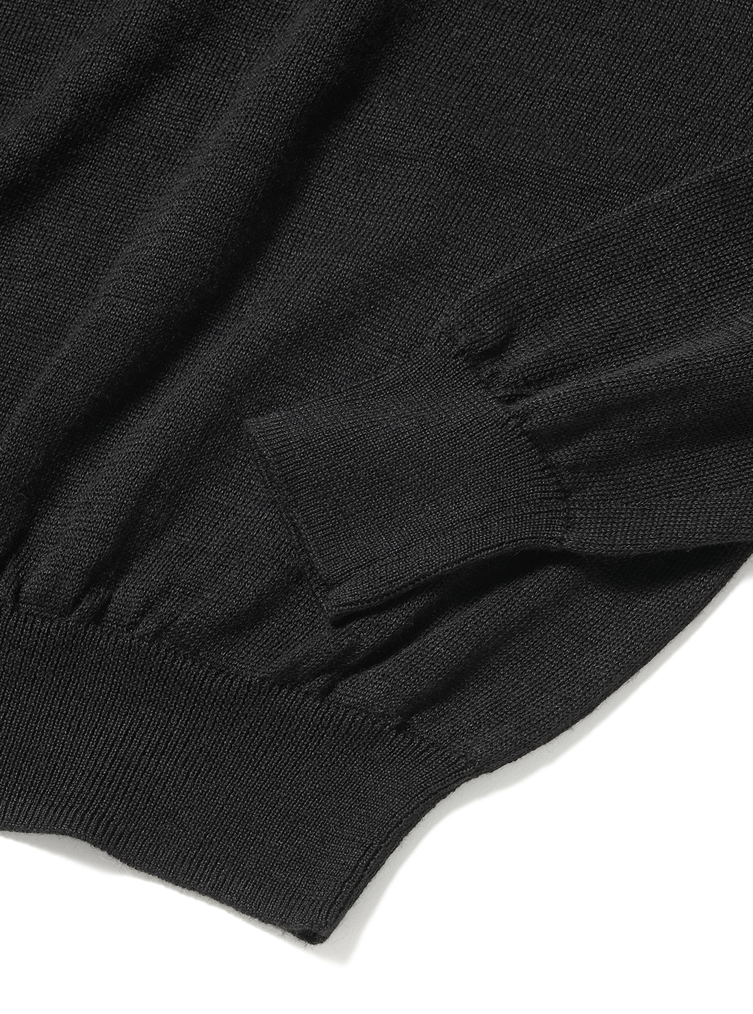 細番手のラミーと細番手のウールの梳毛を撚糸した糸を、あえてゆるく編んだ透け感のある商品。ラミーを採用することによりハリコシを保ちながら、さりげないシアー感とラミーならではのざっくりした表情・清涼感のある商品。