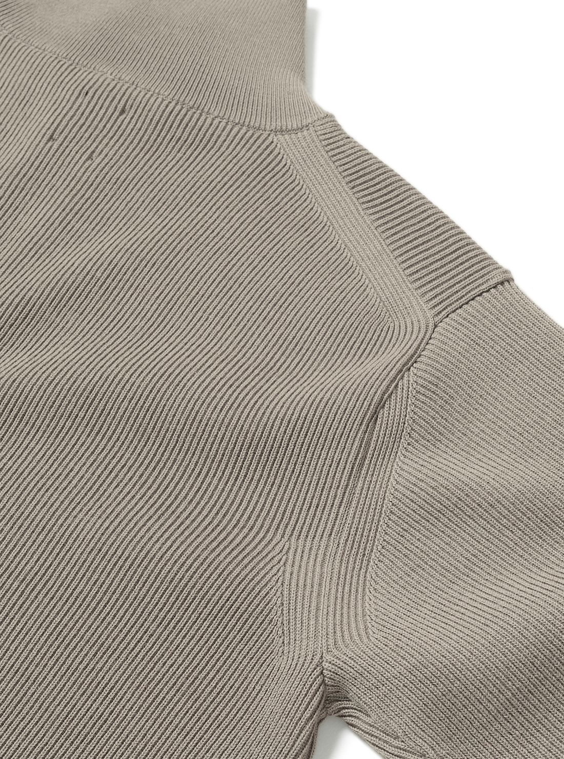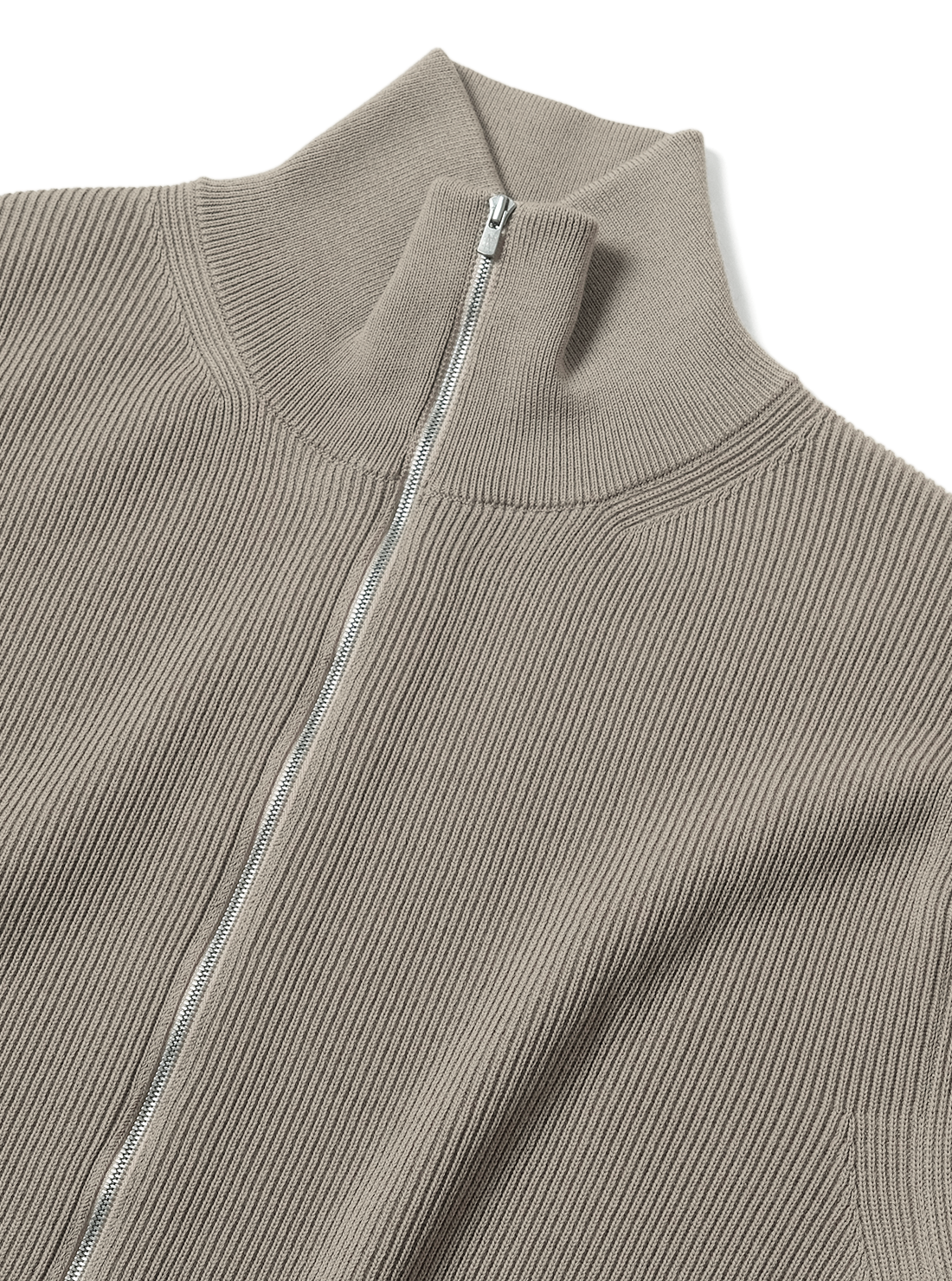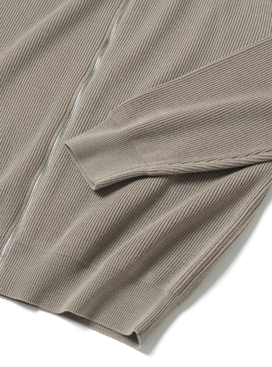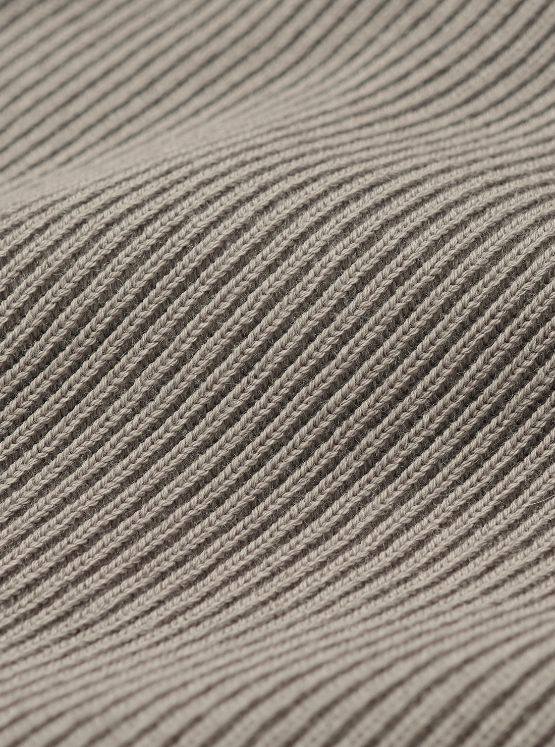 細かな両畦編みの組織で構成されたミニマルなデザインが特徴。
