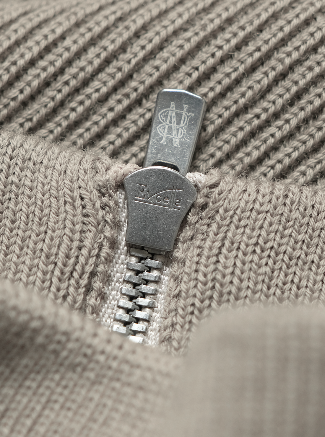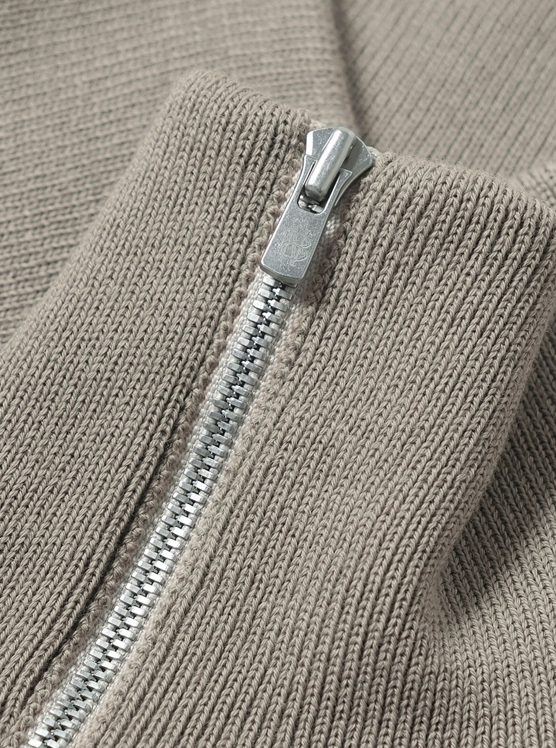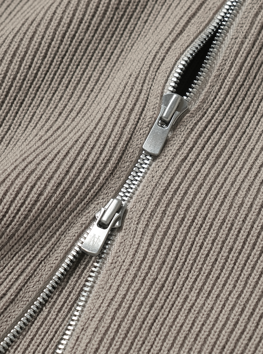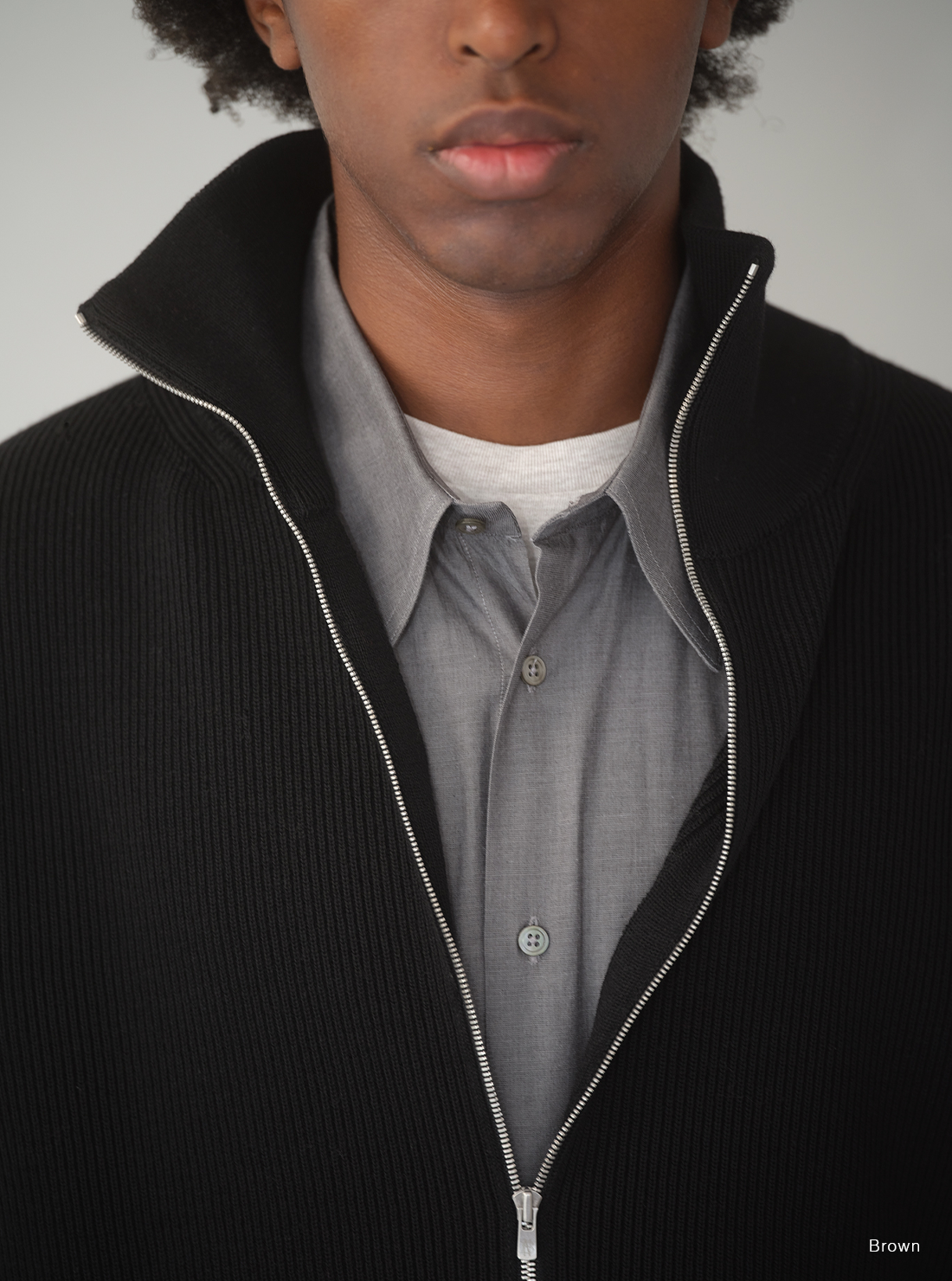 細かな両畦編みの組織で構成されたミニマルなデザインが特徴。