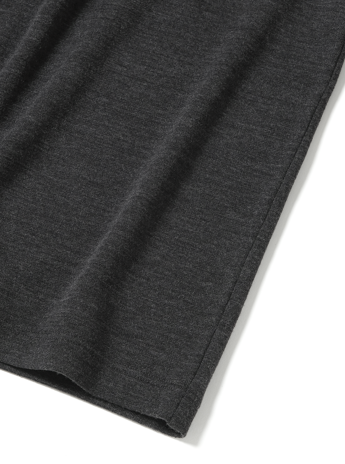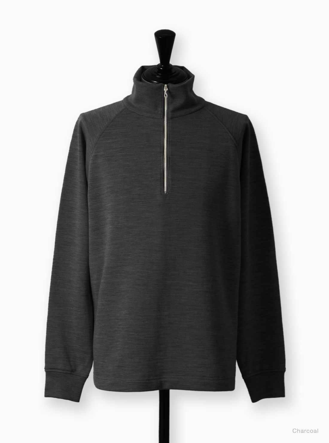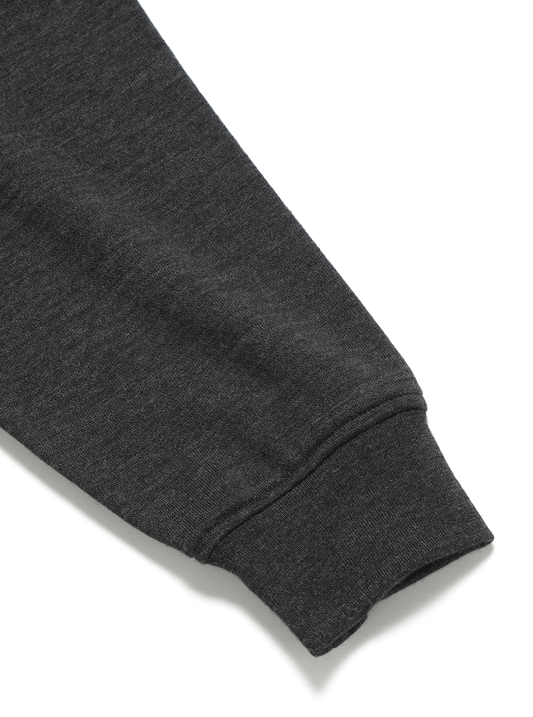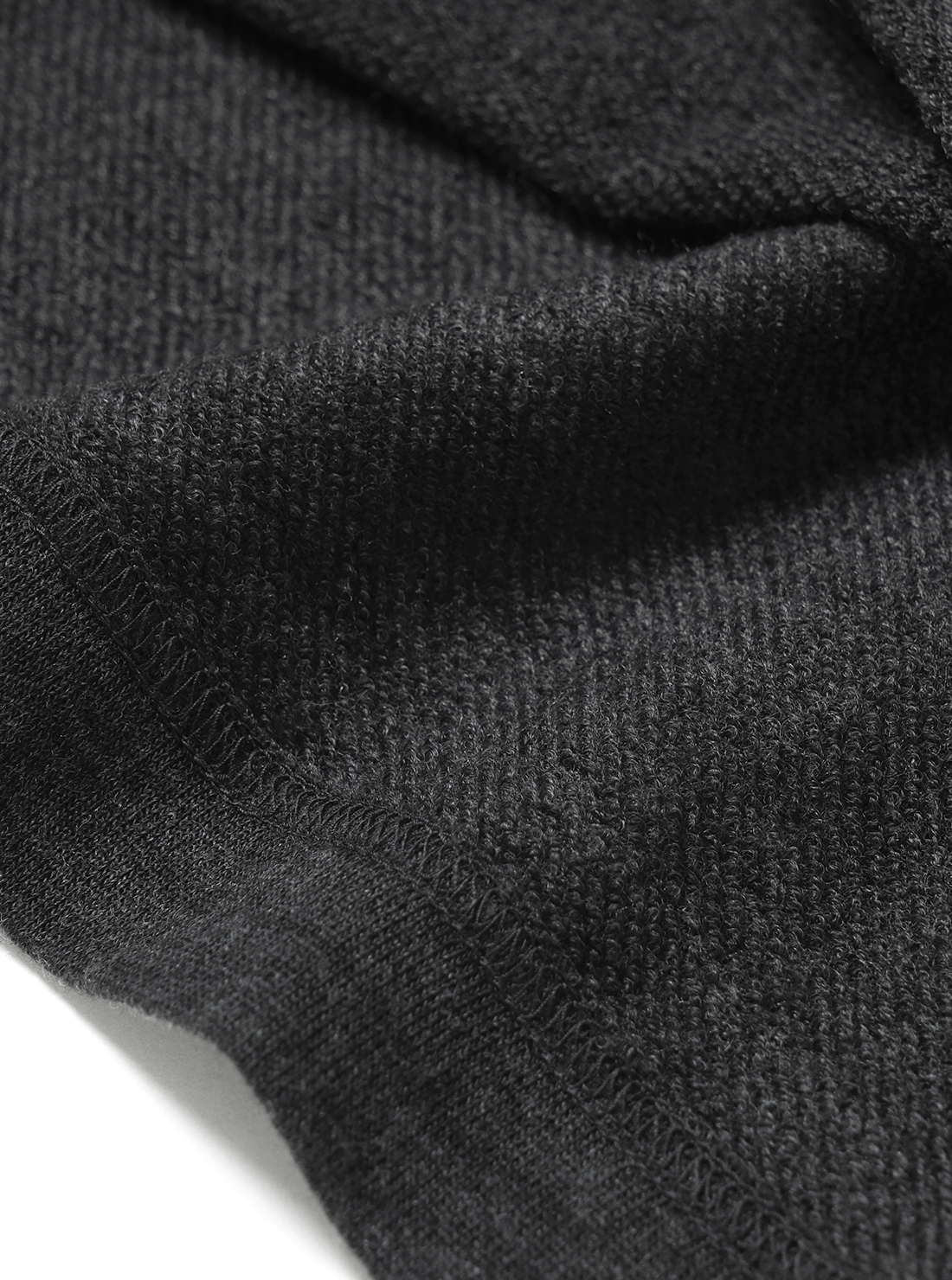 ハイマイクロン梳毛メリノウールを、表糸・中糸・裏糸すべてに使用した裏毛生地の商品。特有の光沢感、滑らかな落ち感、心地良い肌触りが特徴。