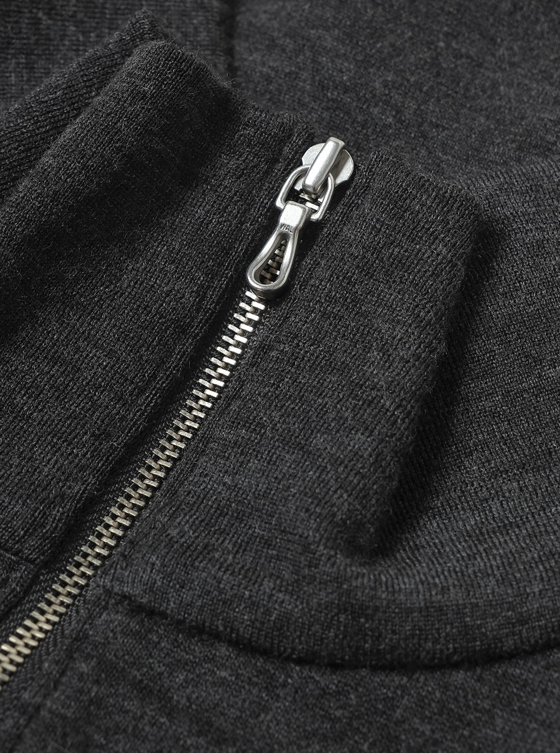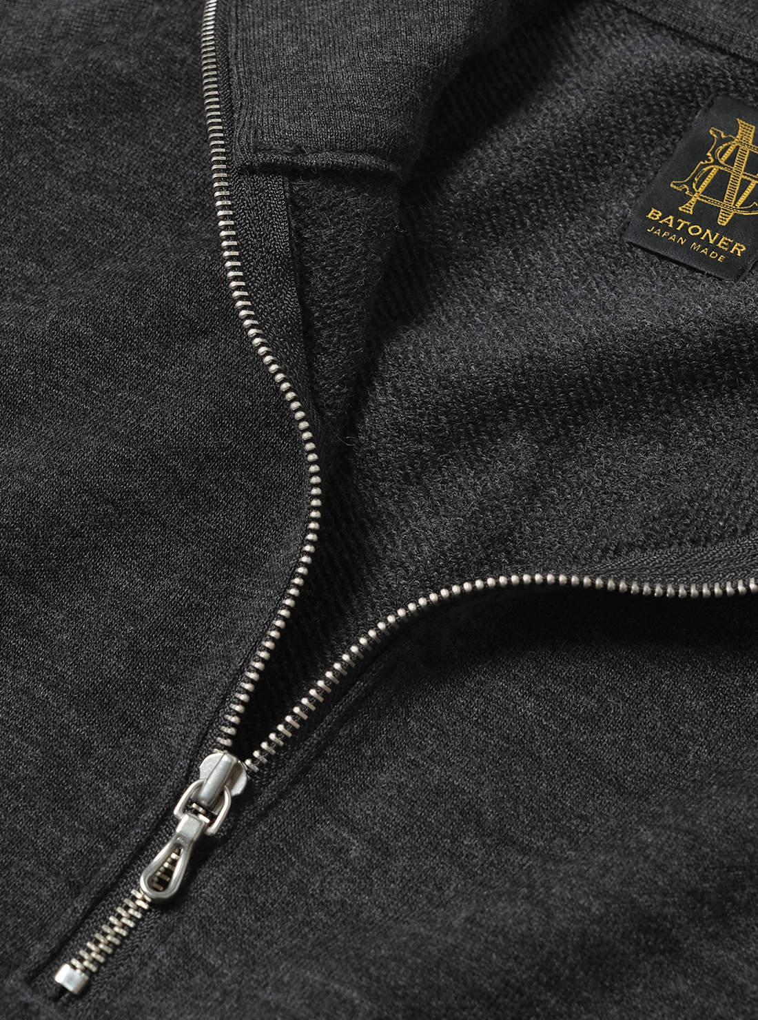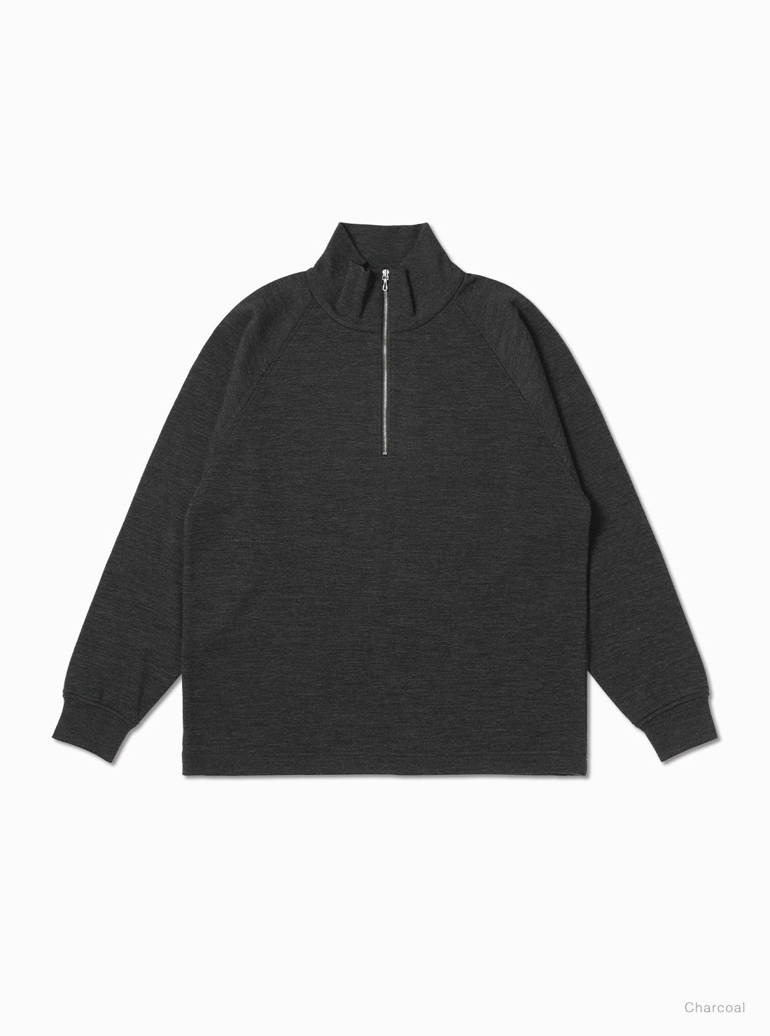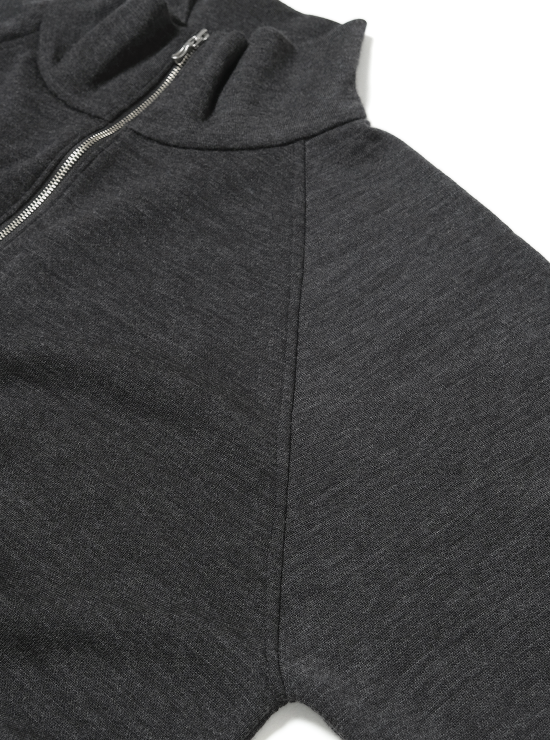 ハイマイクロン梳毛メリノウールを、表糸・中糸・裏糸すべてに使用した裏毛生地の商品。特有の光沢感、滑らかな落ち感、心地良い肌触りが特徴。