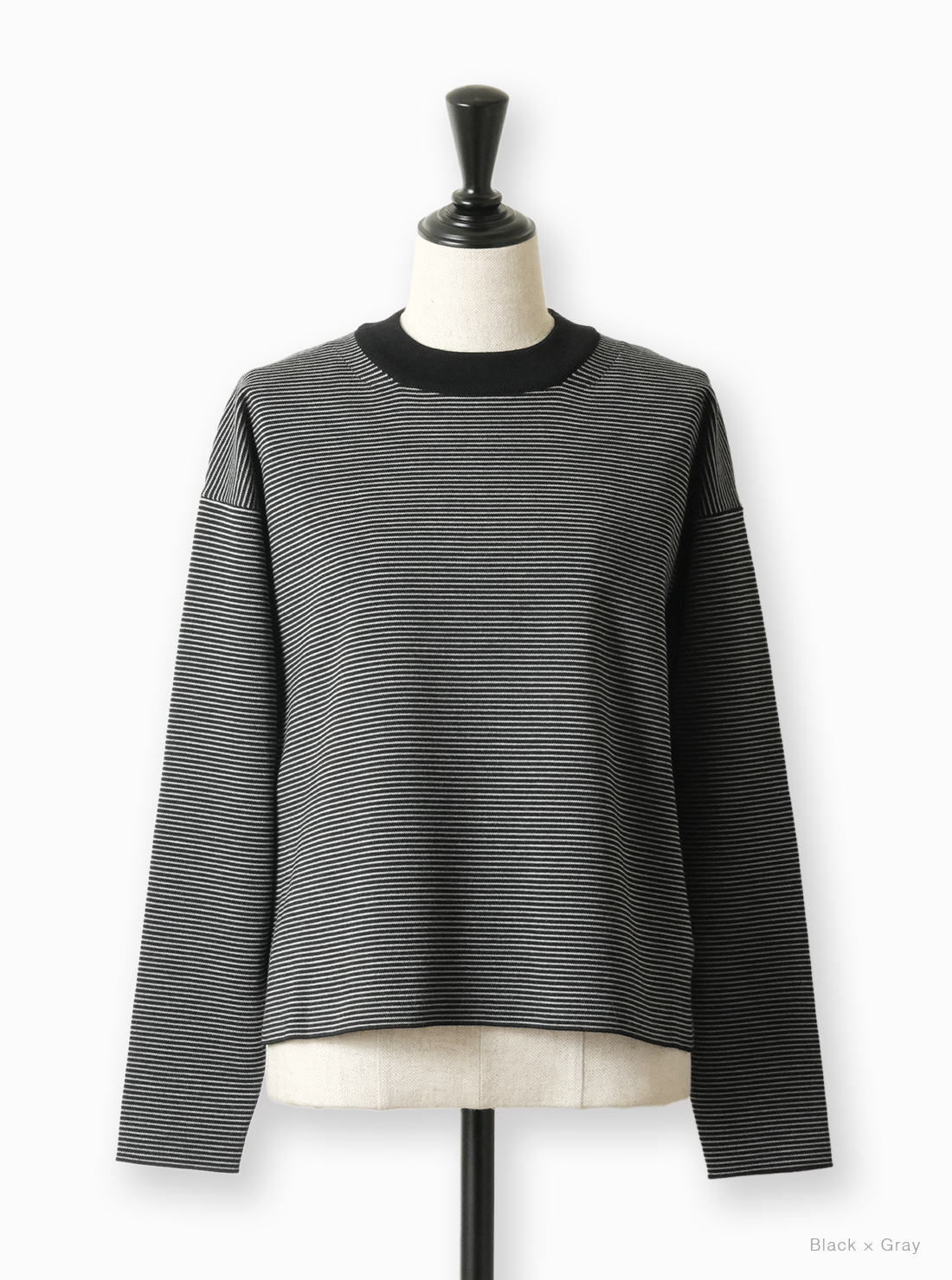 時間をかけて丁寧に編むため、一日に仕上がるのはわずか数枚。ほかの編立機では再現できない繊細な工程を経ており、伸縮性がありリラックスした着心地ながら、型崩れしにくい。