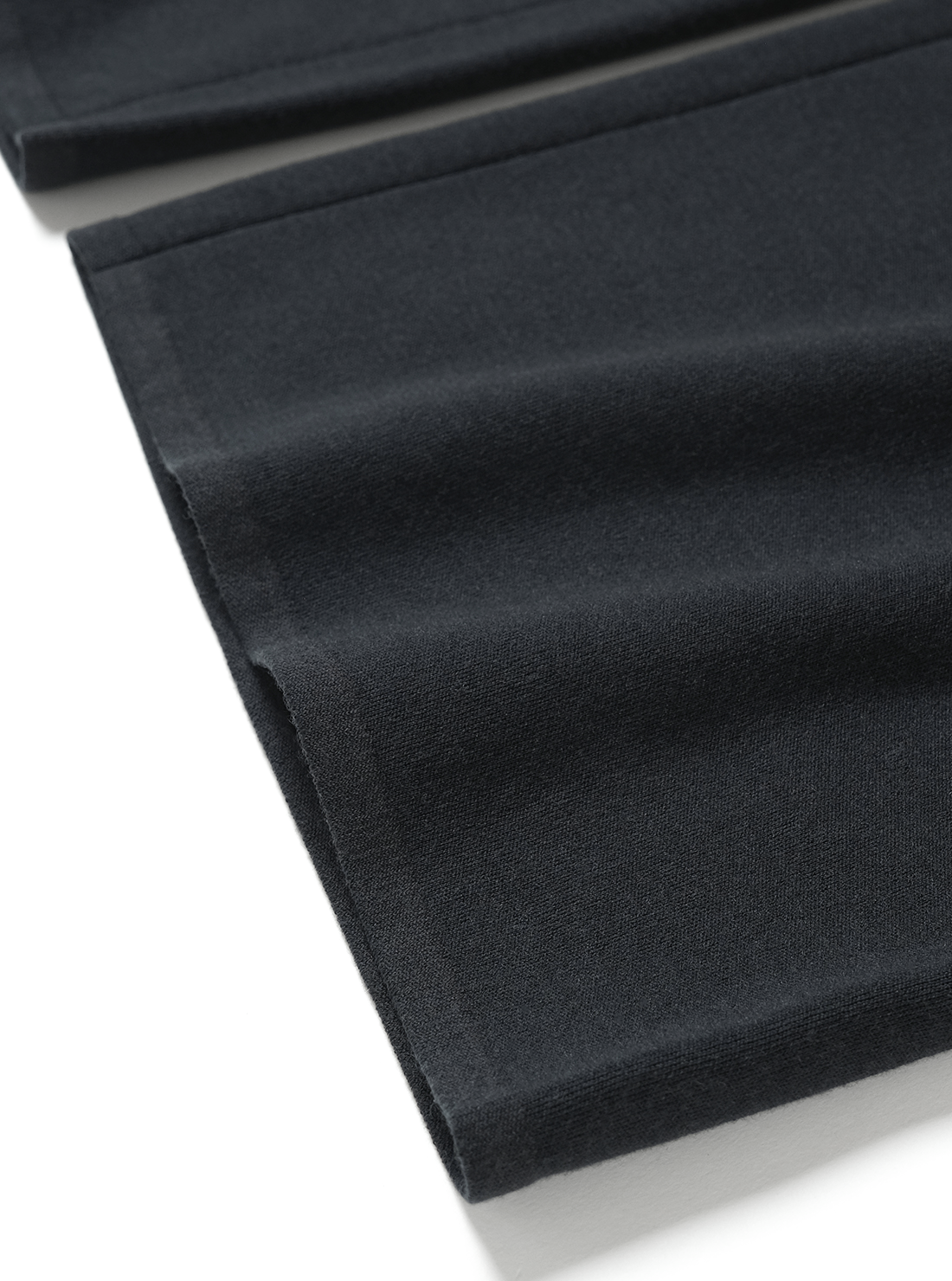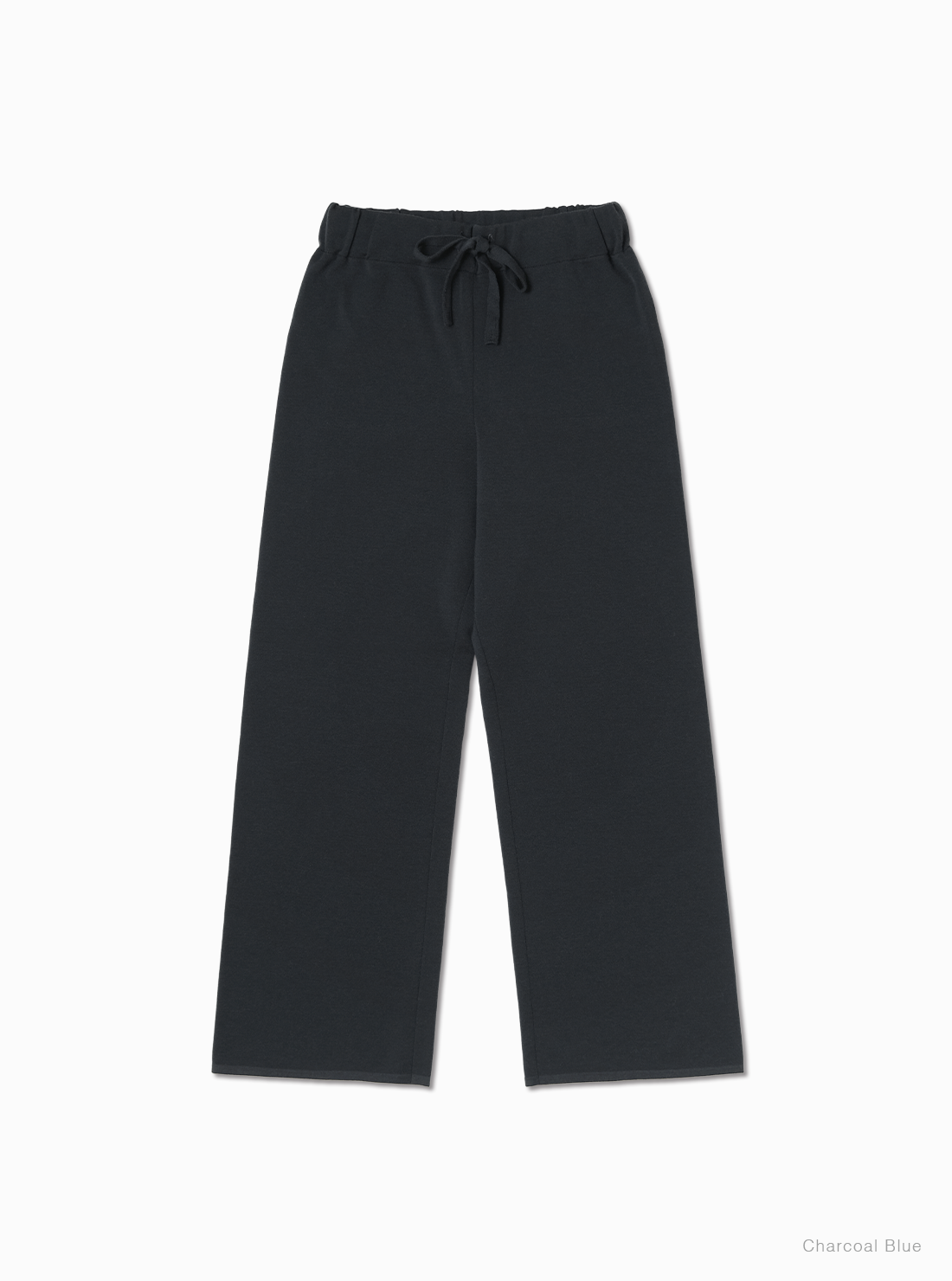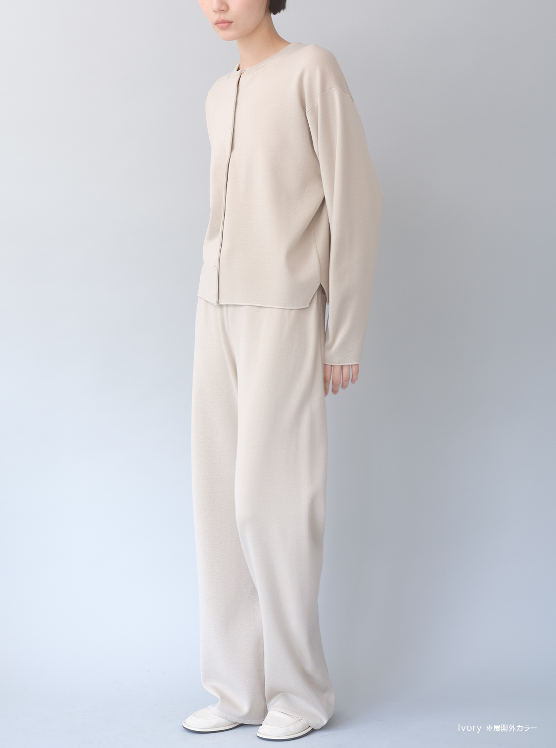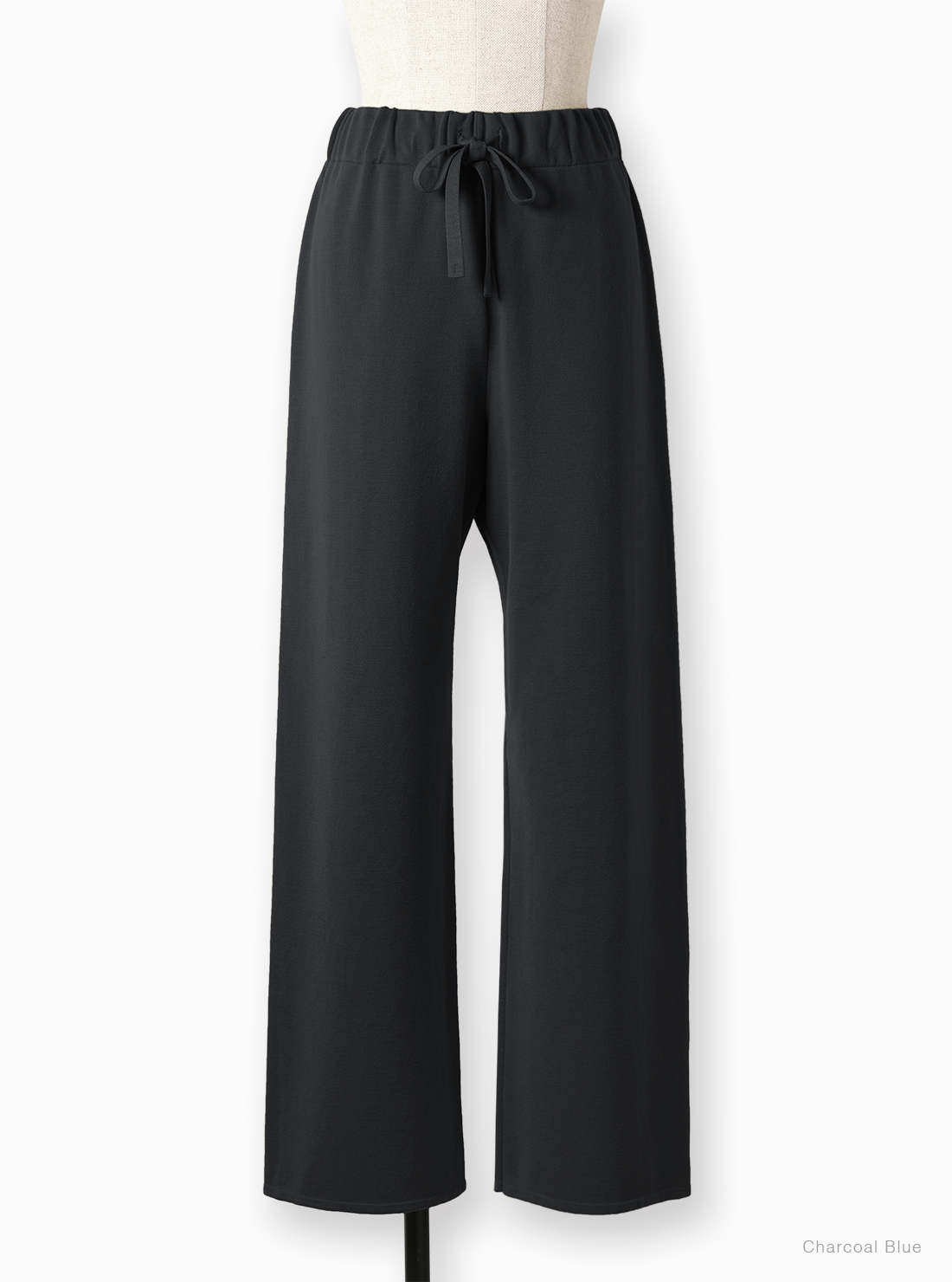 時間をかけて丁寧に編むため、一日に仕上がるのはわずか数枚。ほかの編立機では再現できない繊細な工程を経ており、伸縮性がありリラックスした着心地ながら、型崩れしにくい。ウエストはゴム仕様で、紐による調節も可能。