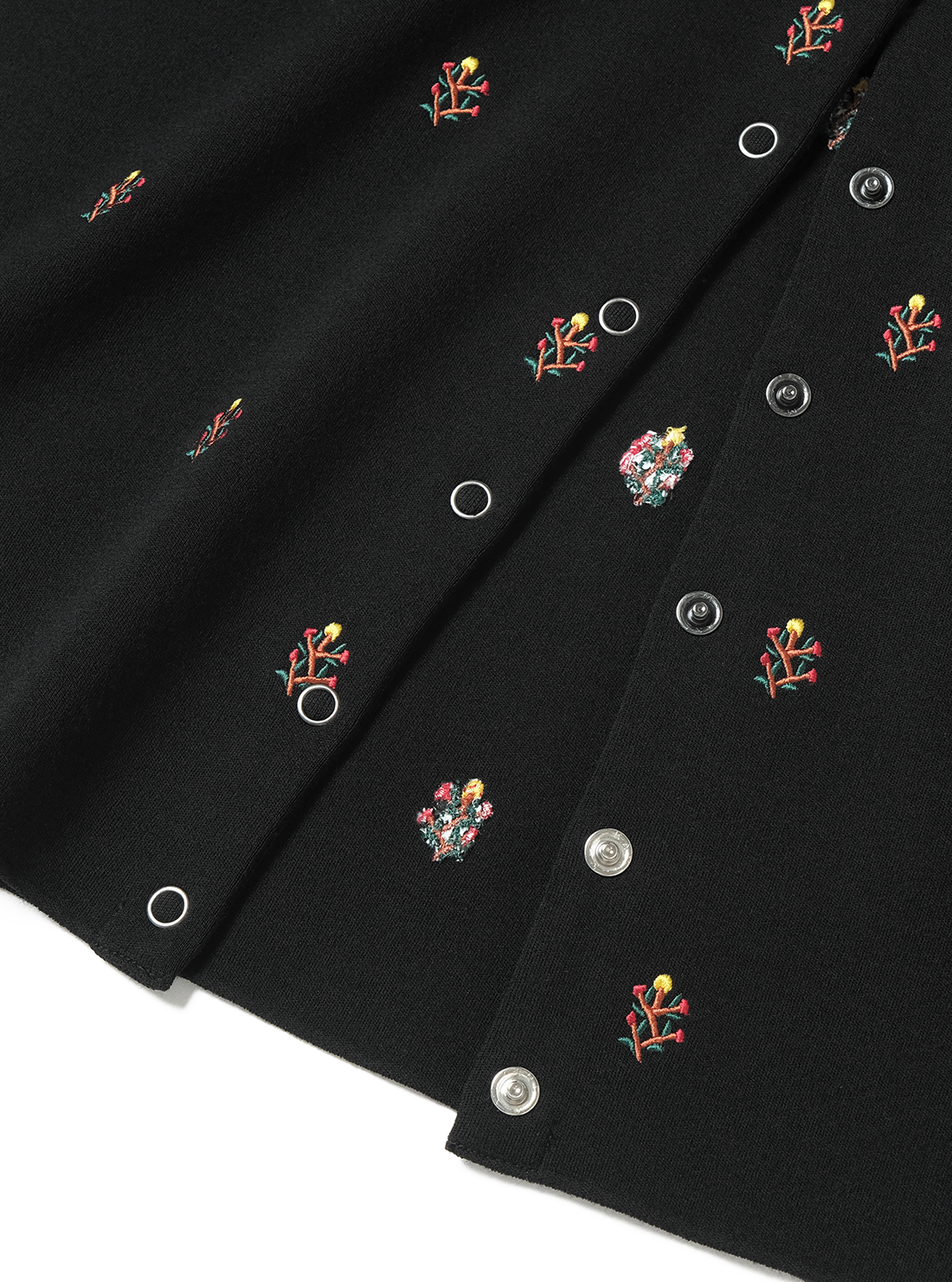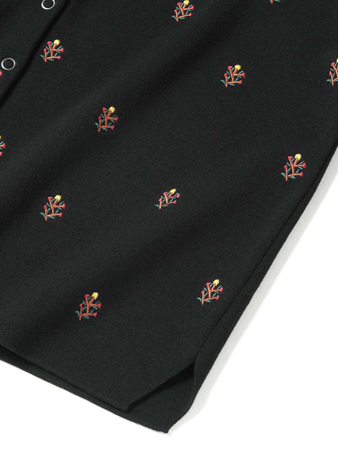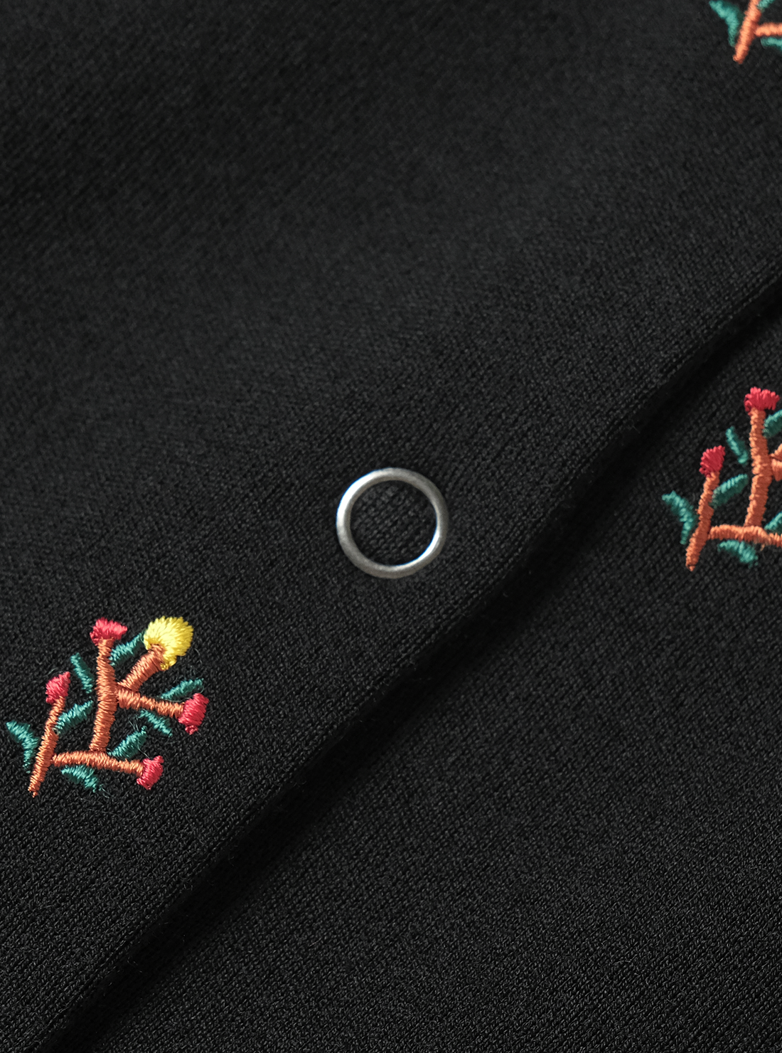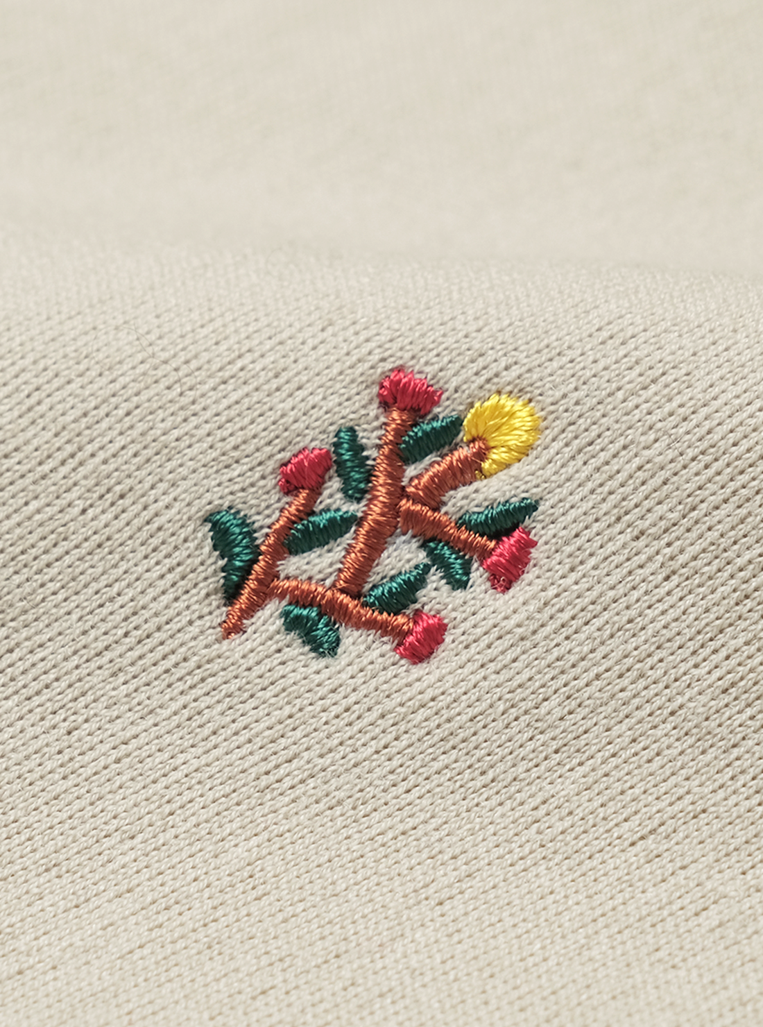 時間をかけて丁寧に編むため、一日に仕上がるのはわずか数枚。ほかの編立機では再現できない繊細な工程を経ており、伸縮性がありリラックスした着心地ながら、型崩れしにくい。BATONERの本社が位置する山形県蔵王で目にした高山植物の美しさを刺繍デザインに落とし込んだ商品。