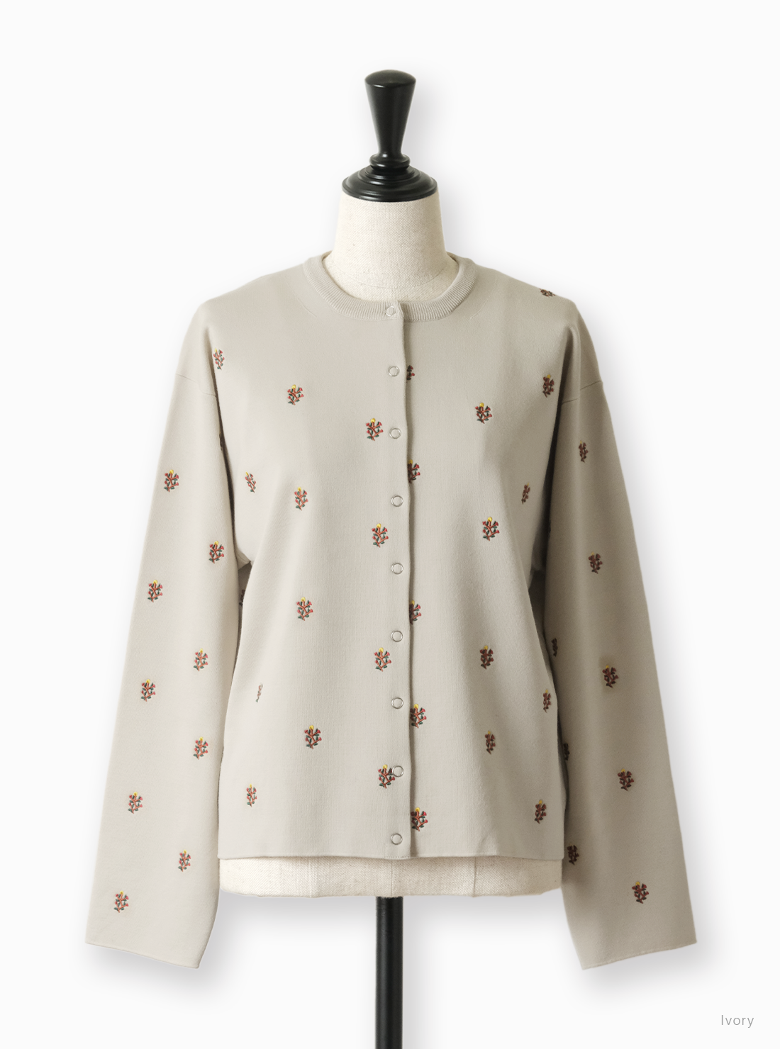 Women 32G SMOOTH WOOL BOTANICAL STITCH CREW CARDIGAN
