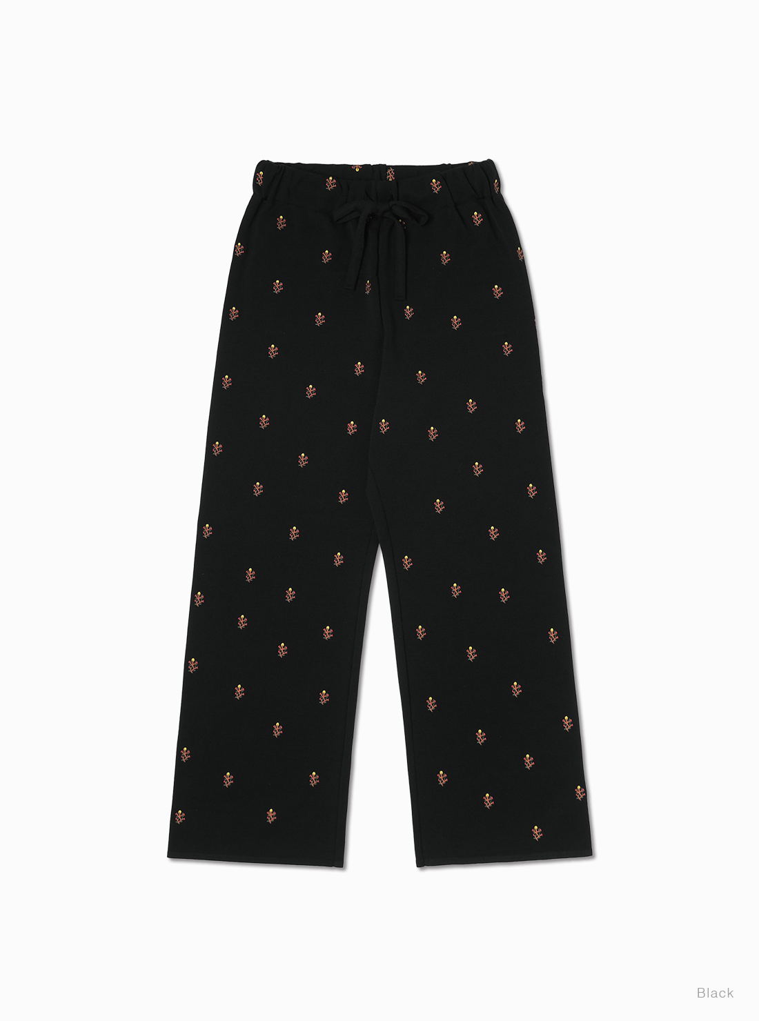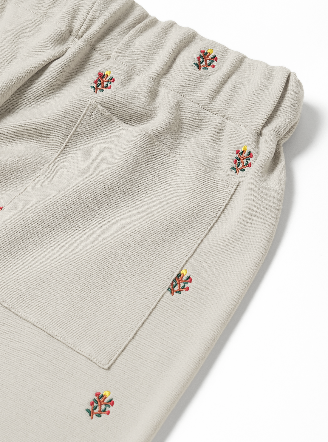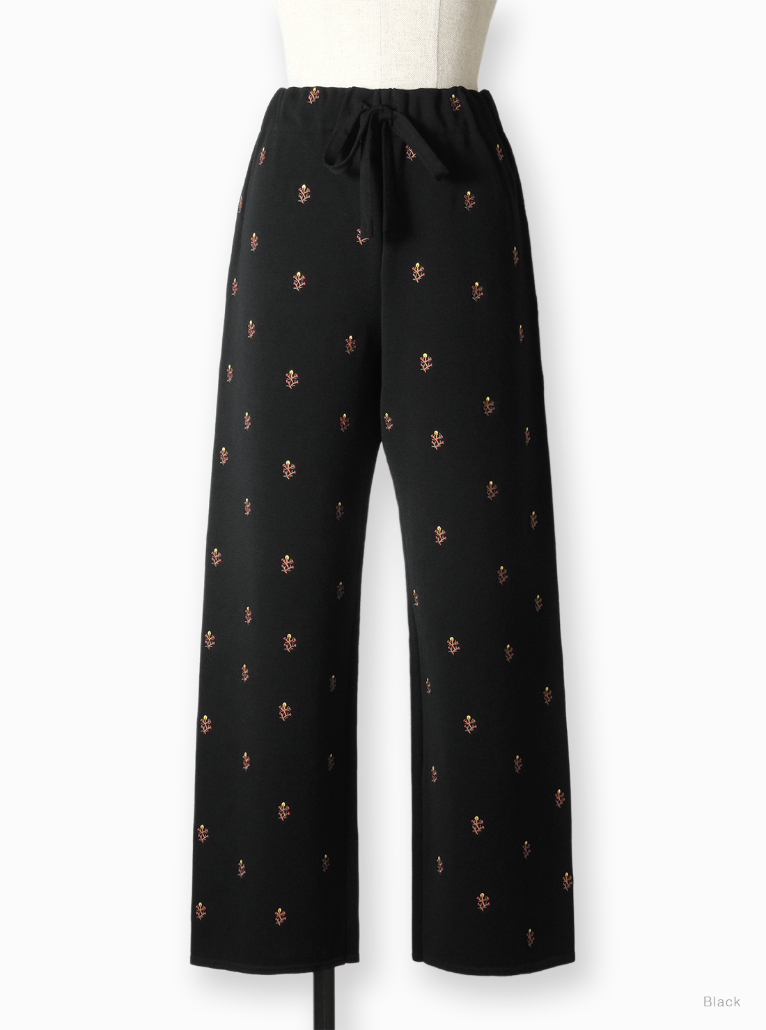 時間をかけて丁寧に編むため、一日に仕上がるのはわずか数枚。ほかの編立機では再現できない繊細な工程を経ており、伸縮性がありリラックスした着心地ながら、型崩れしにくい。BATONERの本社が位置する山形県蔵王で目にした高山植物の美しさを刺繍デザインに落とし込んだ商品。ウエストはゴム仕様で紐で調整可能。