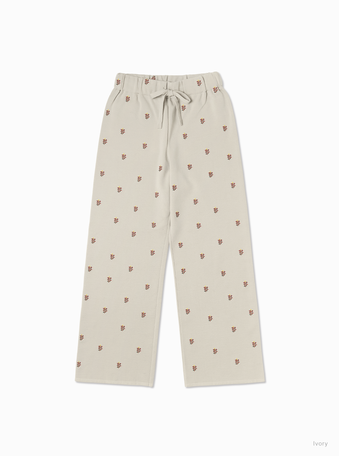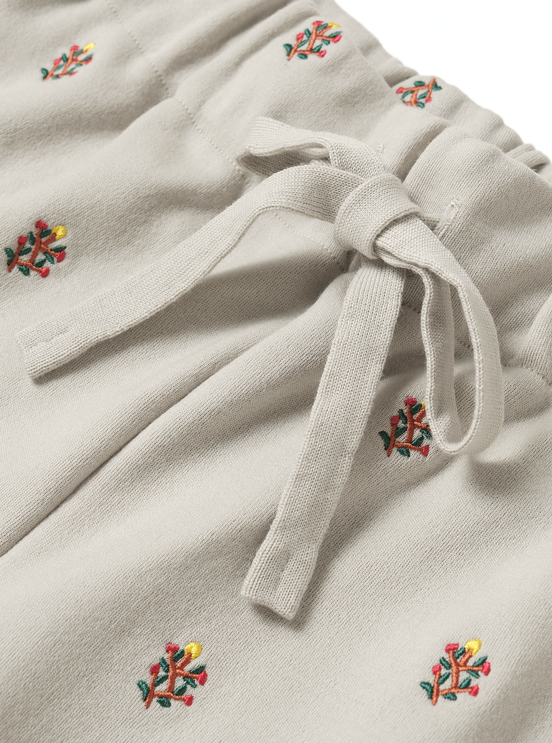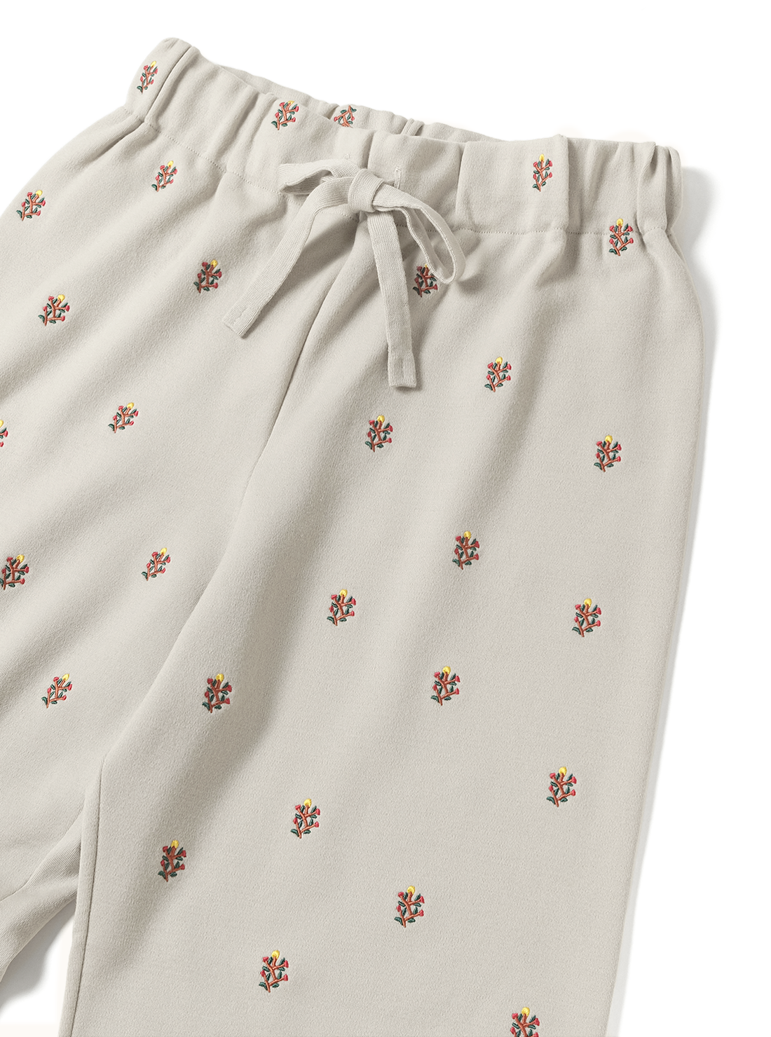 時間をかけて丁寧に編むため、一日に仕上がるのはわずか数枚。ほかの編立機では再現できない繊細な工程を経ており、伸縮性がありリラックスした着心地ながら、型崩れしにくい。BATONERの本社が位置する山形県蔵王で目にした高山植物の美しさを刺繍デザインに落とし込んだ商品。ウエストはゴム仕様で紐で調整可能。