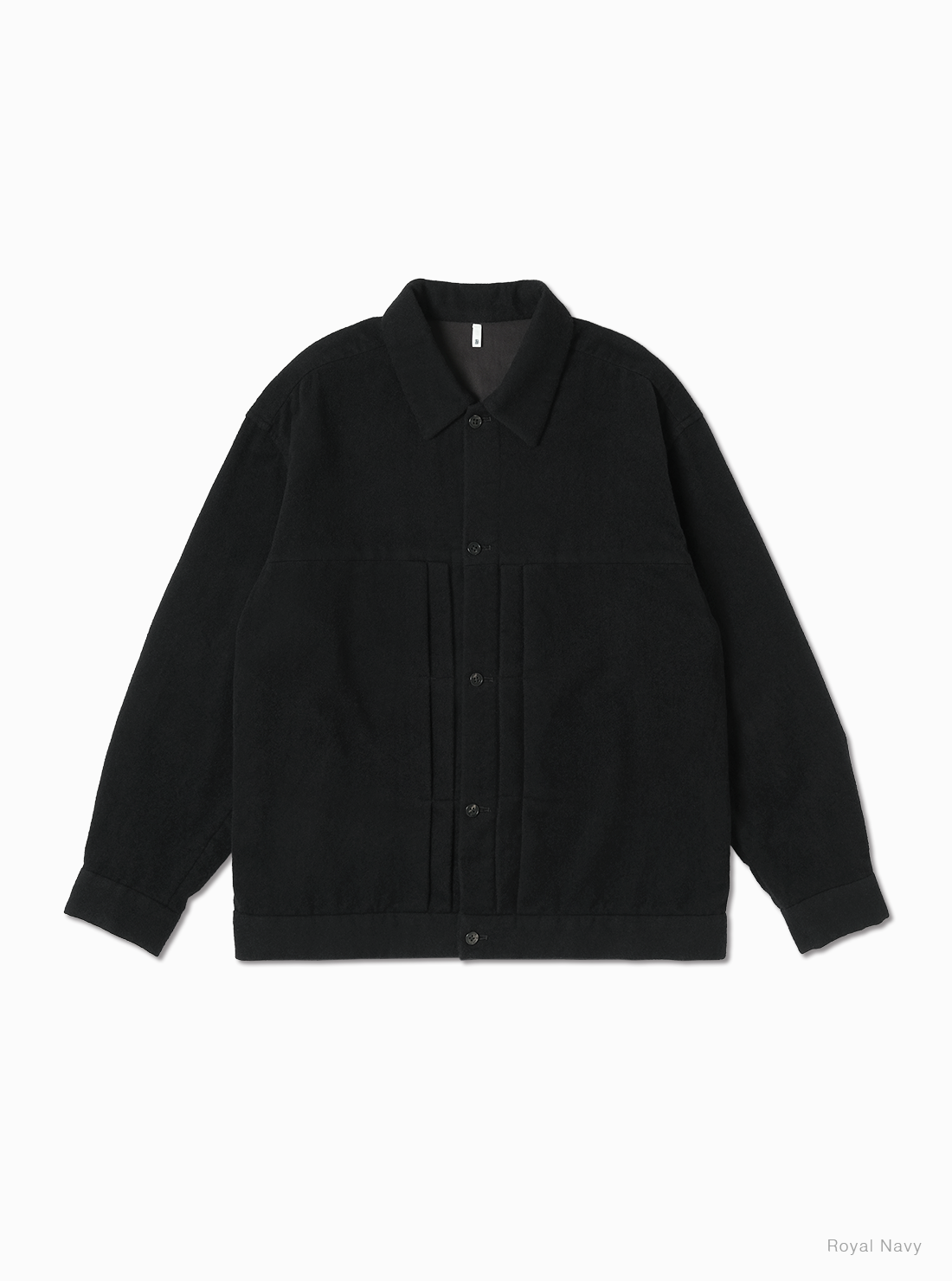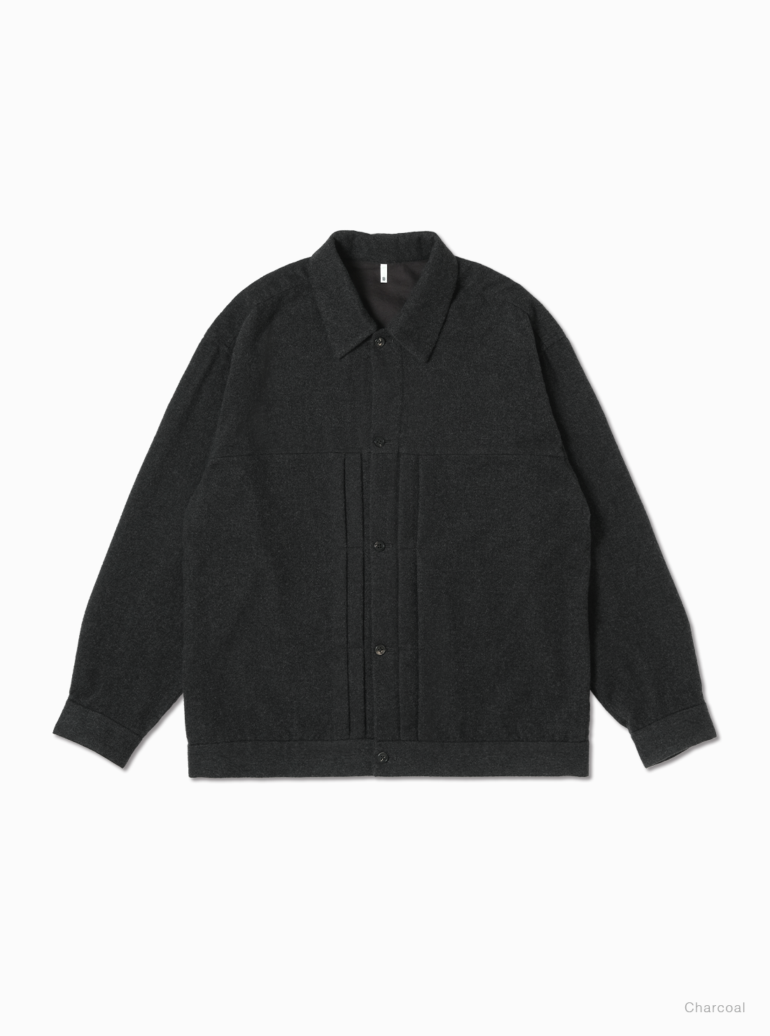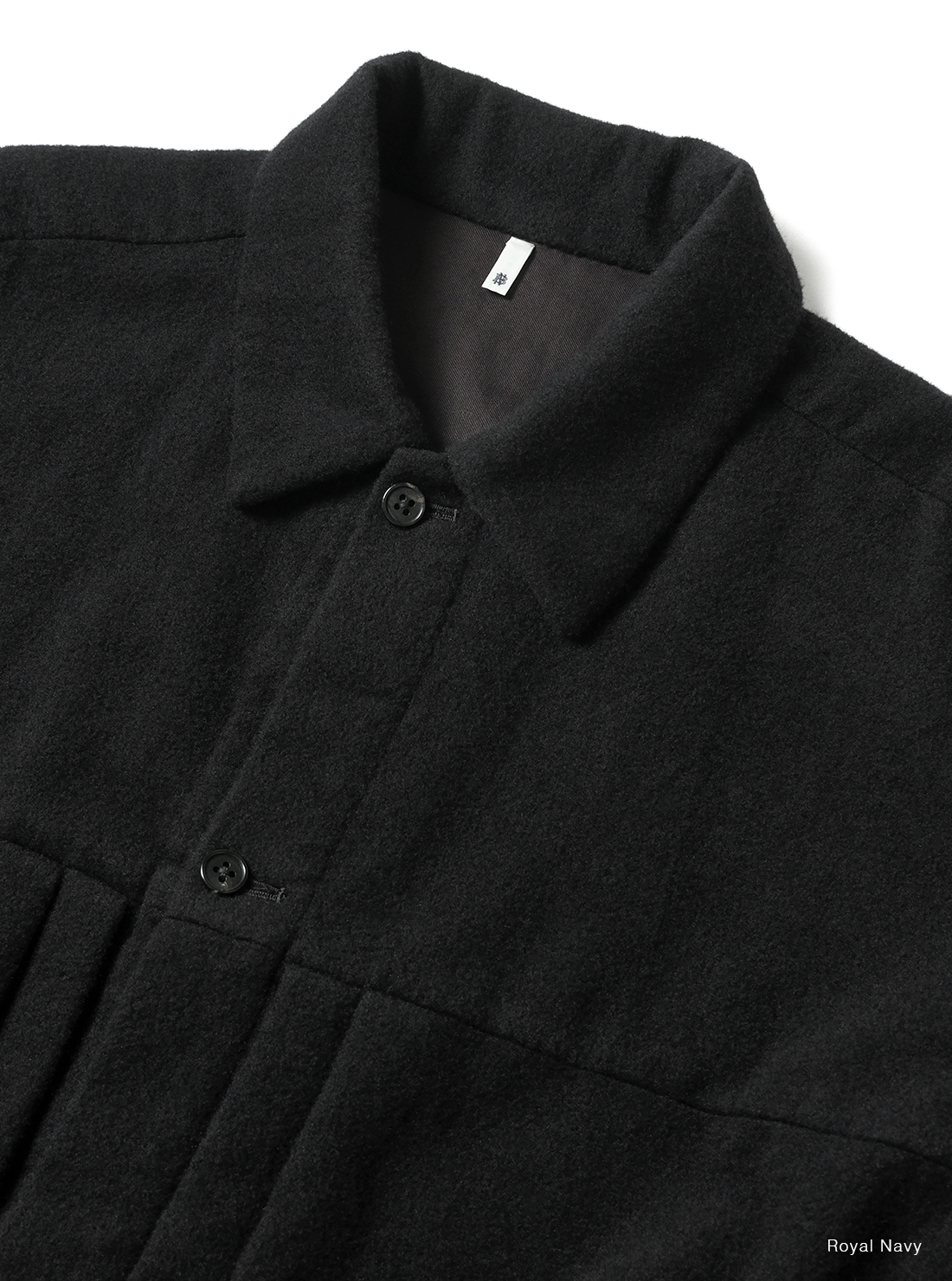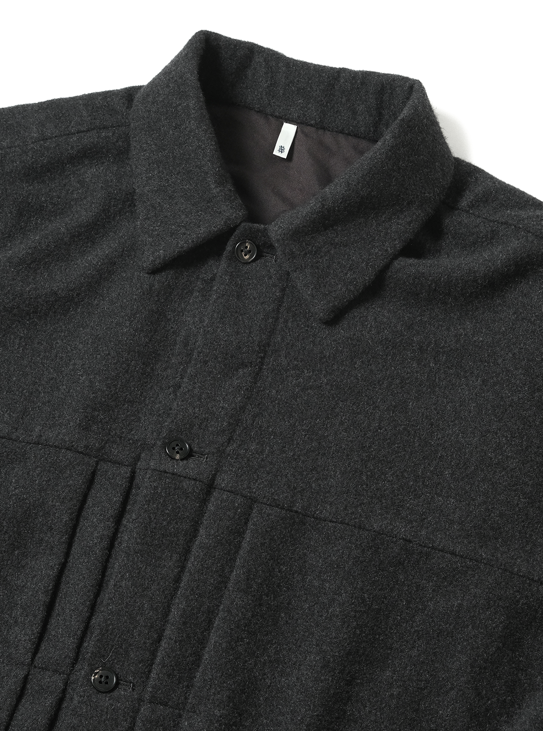ニット用に紡績された紡毛カシミヤに甘く撚りをかけて生地に仕立て、さらにニット用の縮絨加工を施すことで、布帛でありながらニットのような柔らかさと膨らみを実現。裾にはサイドアジャスター付き。