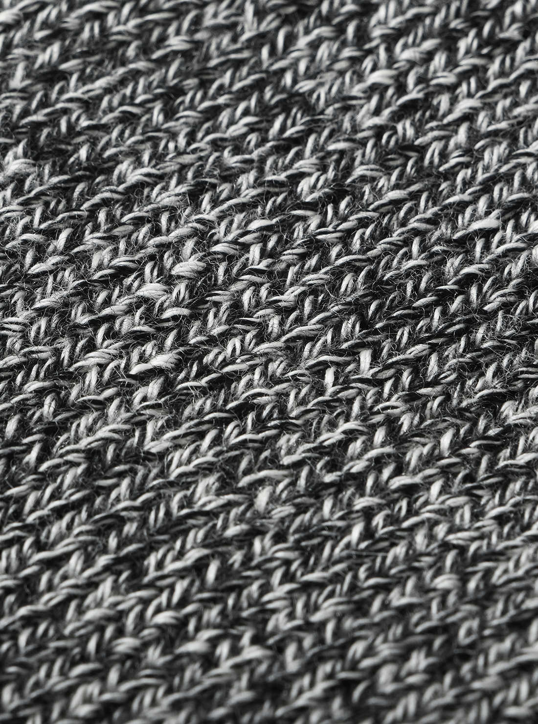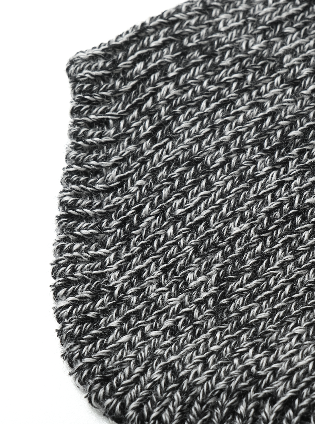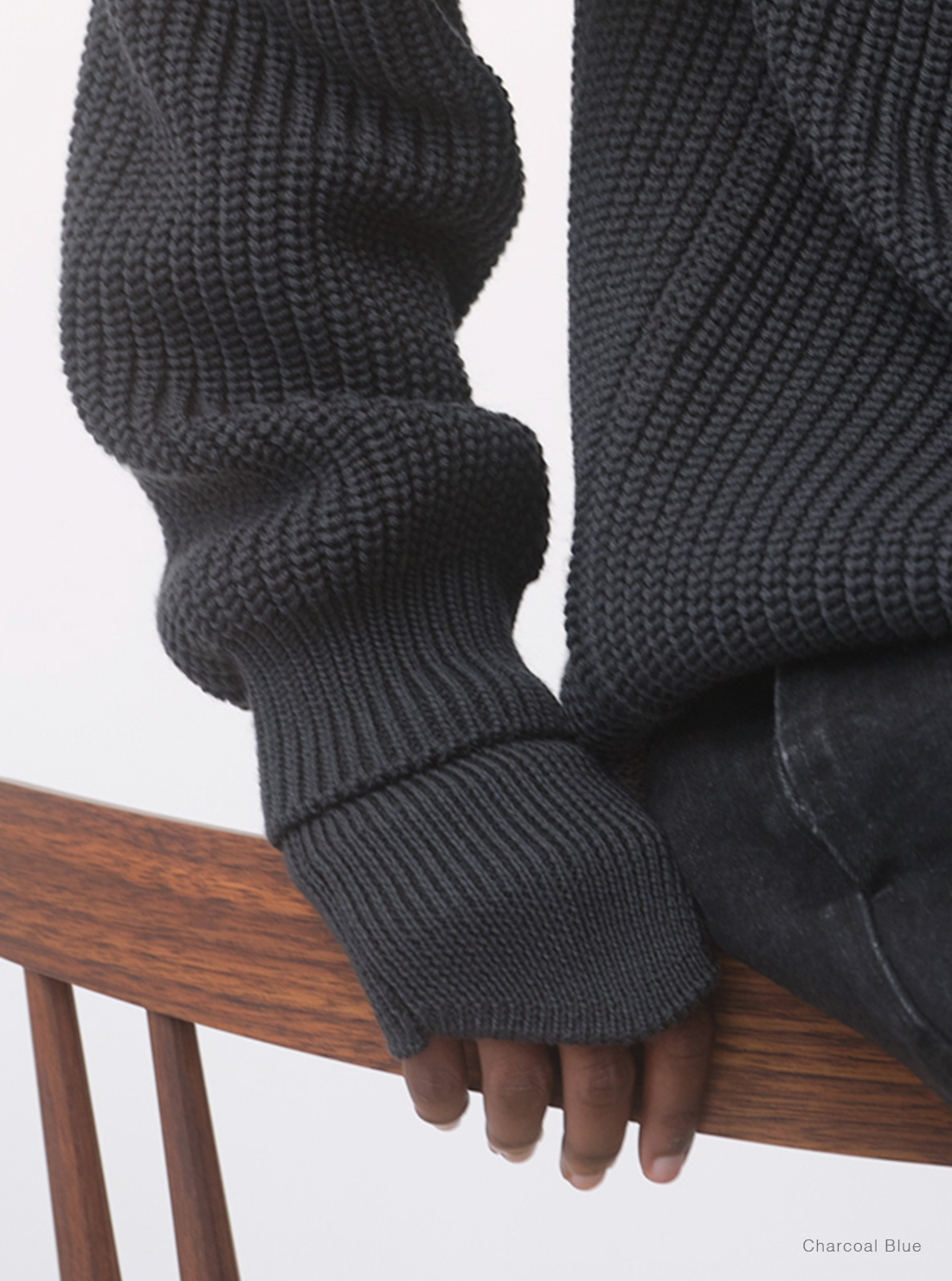 SIGNATUREシリーズの為に開発したSOLIDWOOLという糸を使用。ダレにくく、毛玉になりにくい商品で編み目の立体感が特徴。