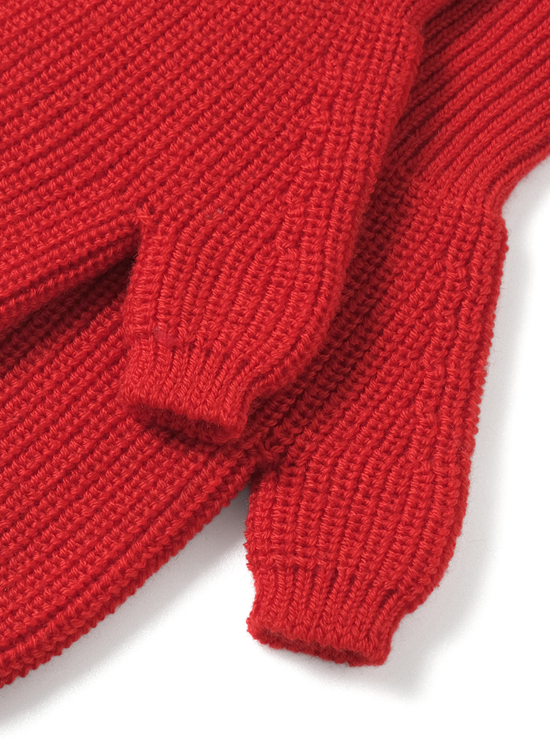 SIGNATUREシリーズの為に開発したSOLIDWOOLという糸を使用。ダレにくく、毛玉になりにくい商品で編み目の立体感が特徴。